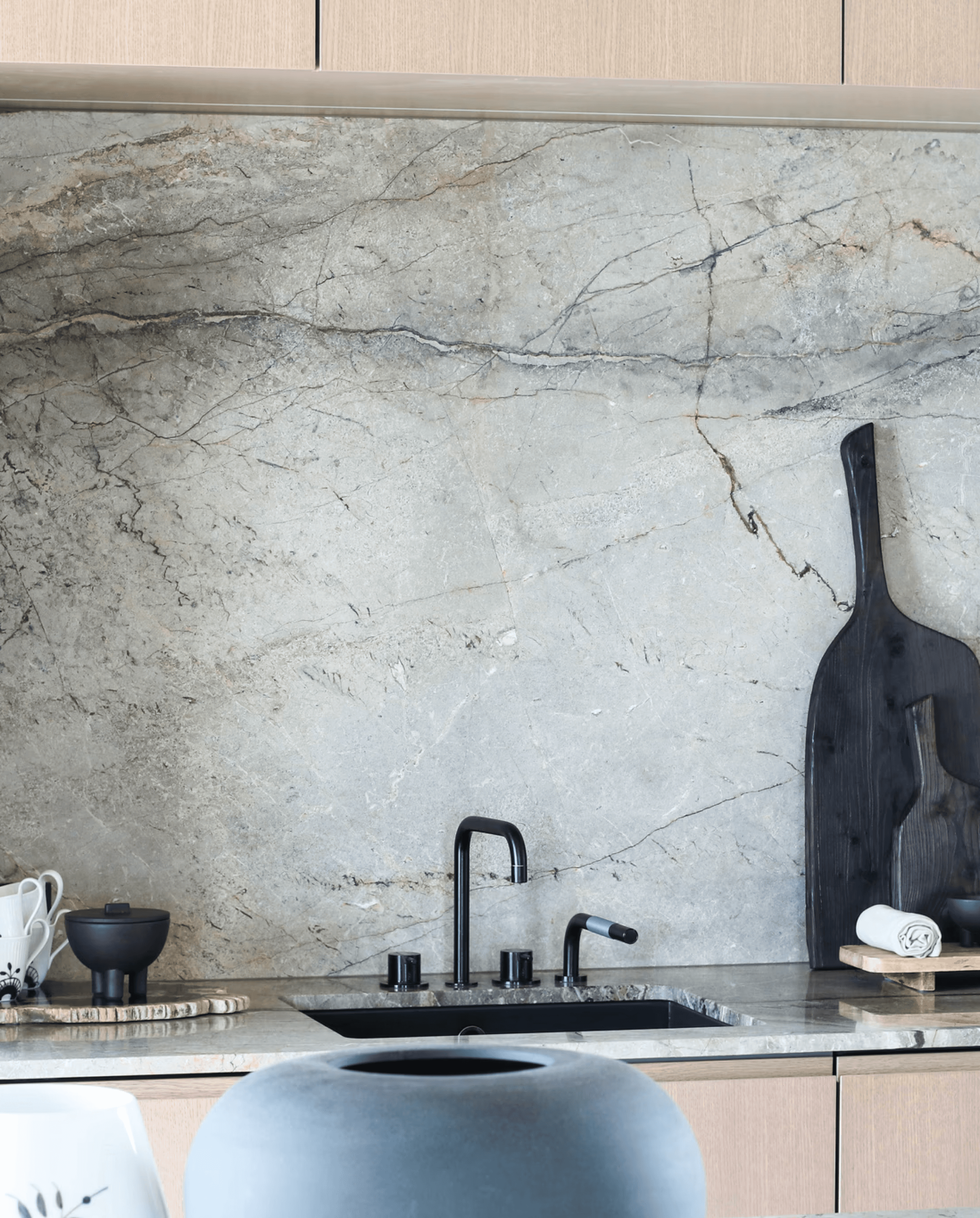 Já. Við getum búið til heildstæða steinlausn með borðplötu, bakplötu, stein á hlið eða hafa eyjunnar og stein í tækjaskáp.