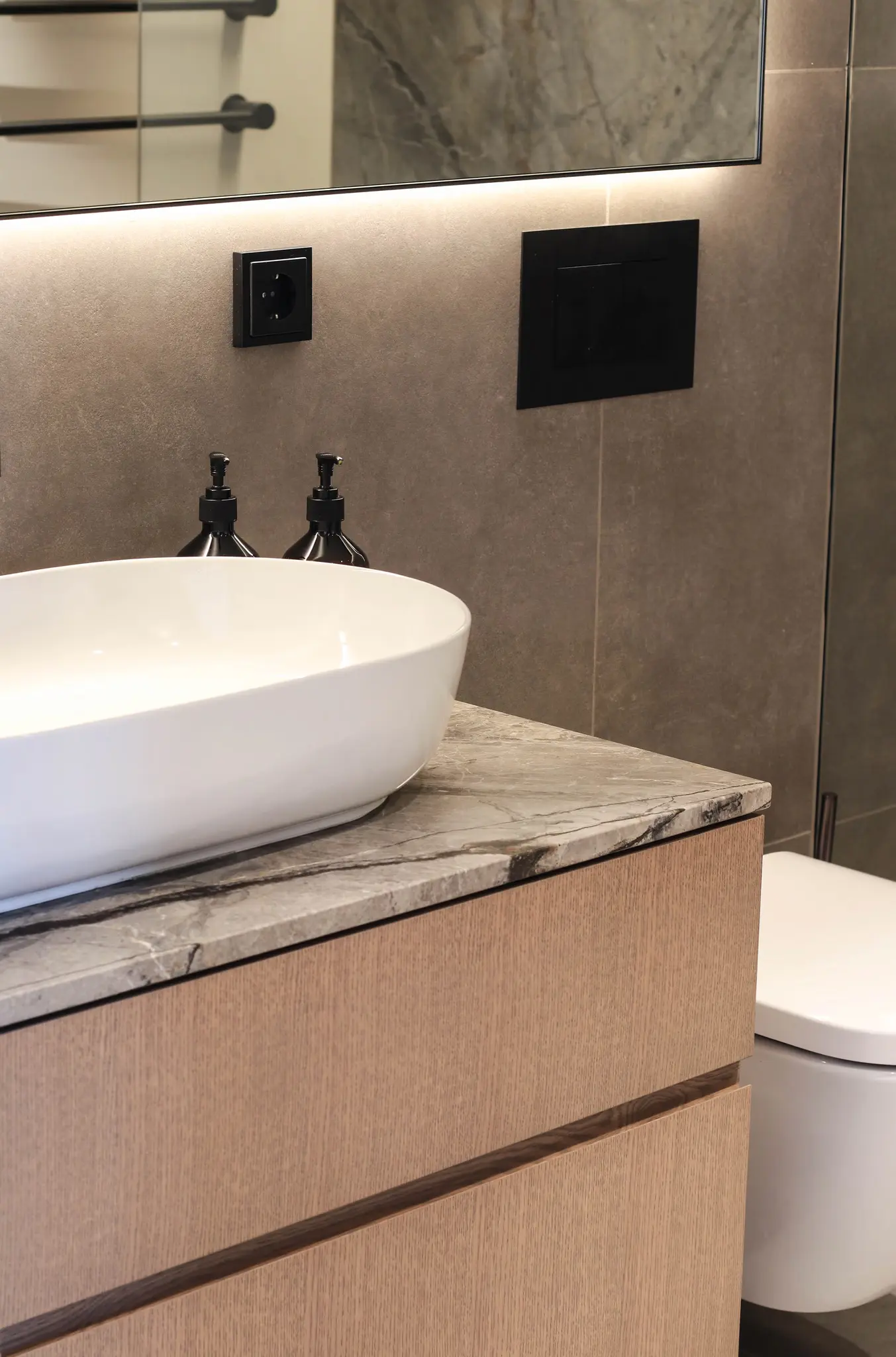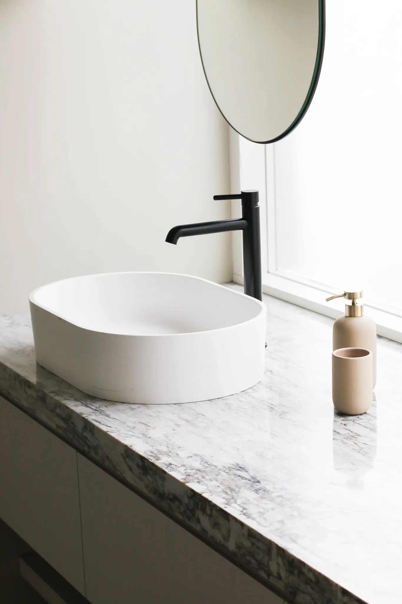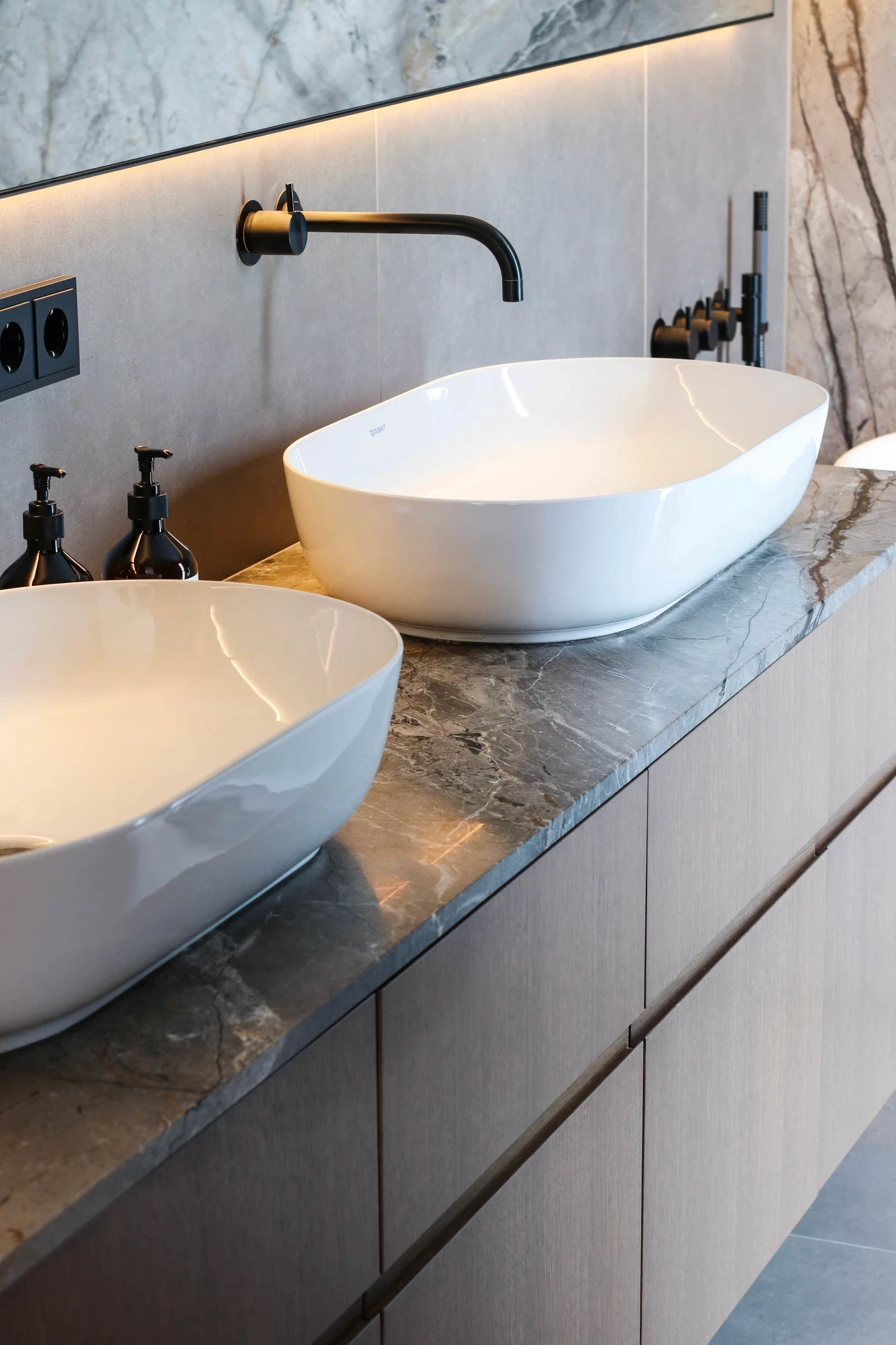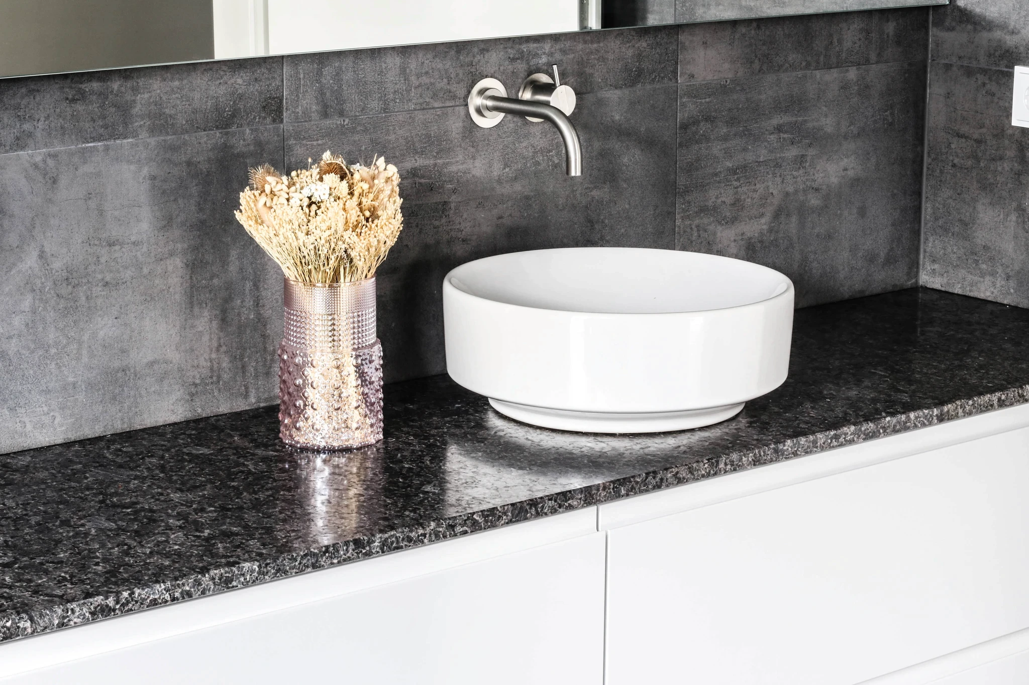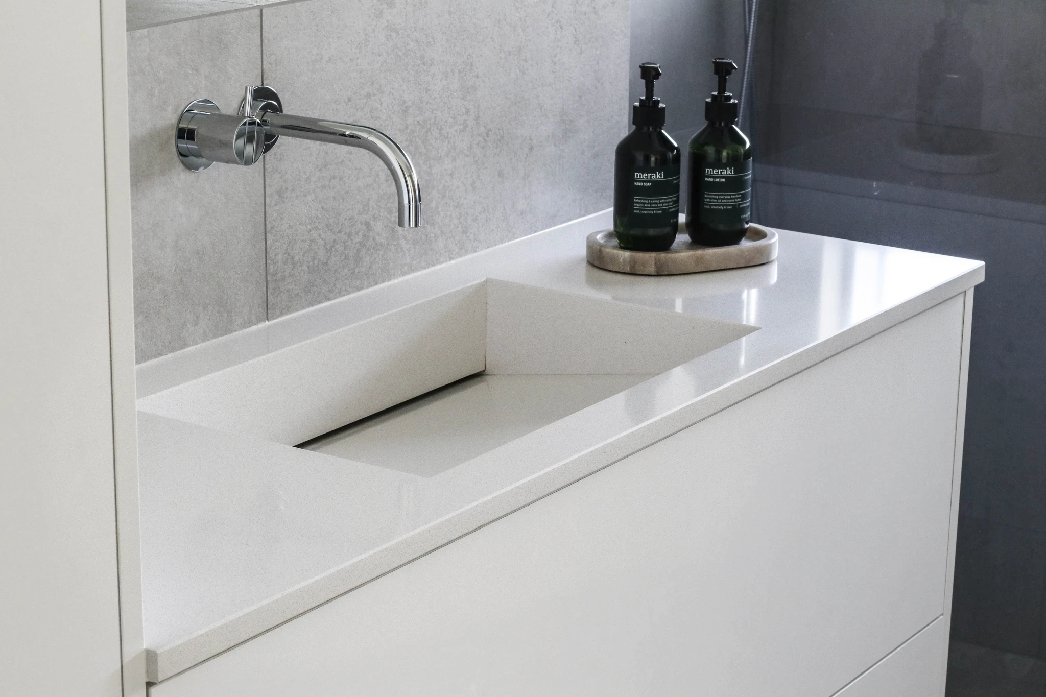 Allar baðplötur frá Steinlausnum eru sérsmíðaðar til að passa fullkomlega að þínu rými. Hvort sem þú ert með lítið baðherbergi eða stærra rými með tvöföldum vöskum, þá er hægt að aðlaga lausnina að þínum þörfum.
